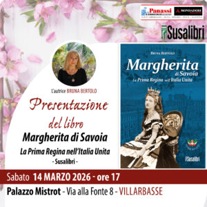 SABATO 14 MARZO 2026 – Bruna Bertolo presenta: “Margherita di Savoia”